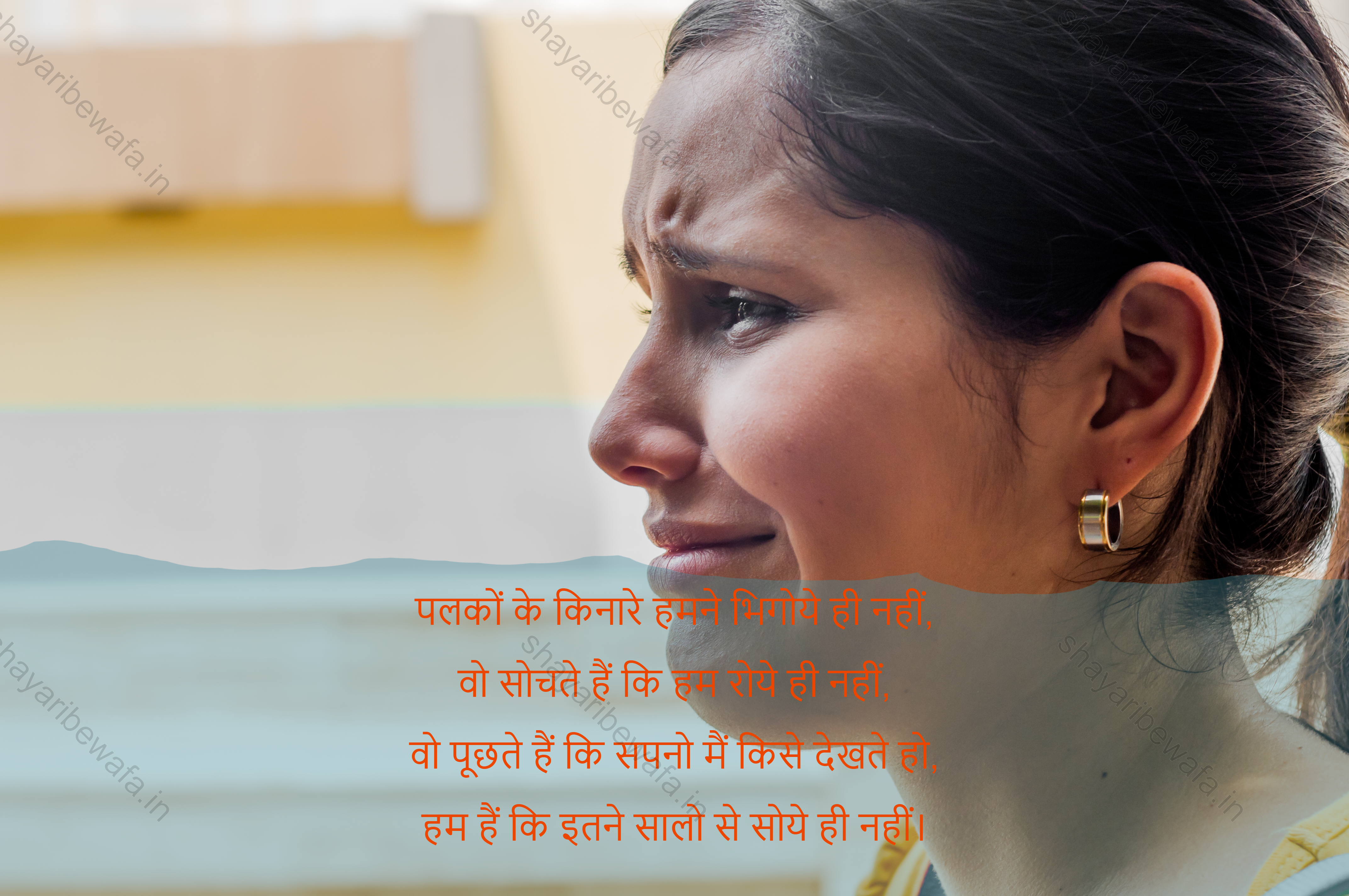 पलकों के किनारे हमने भिगोये ही नहीं,वो सोचते हैं कि हम रोये ही नहीं,वो पूछते हैं कि सपनो मैं किसे देखते हो,हम हैं कि इतने सालो से सोये ही नहीं।