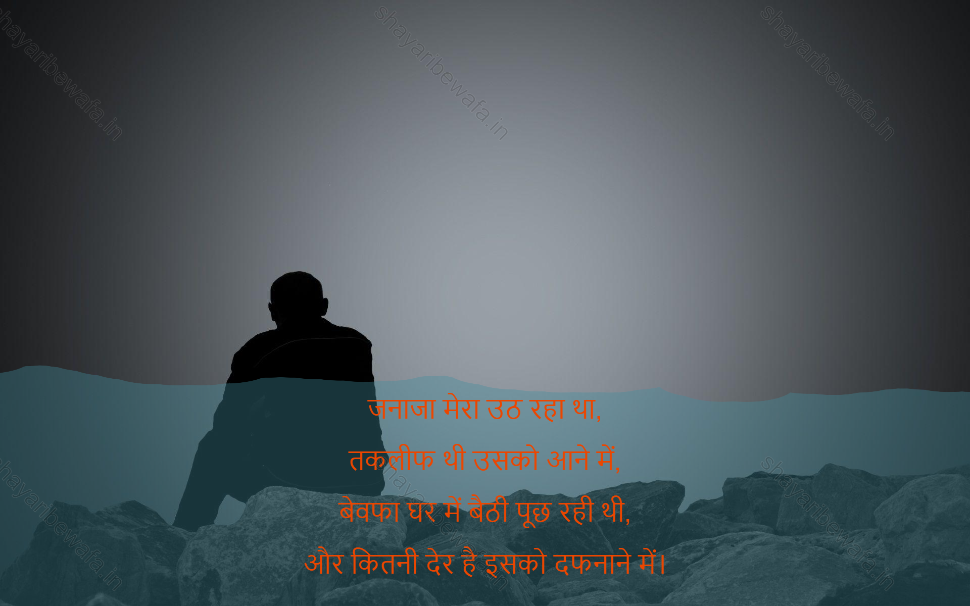जनाजा मेरा उठ रहा था,तकलीफ थी उसको आने में,बेवफा घर में बैठी पूछ रही थी,और कितनी देर है इसको दफनाने में।